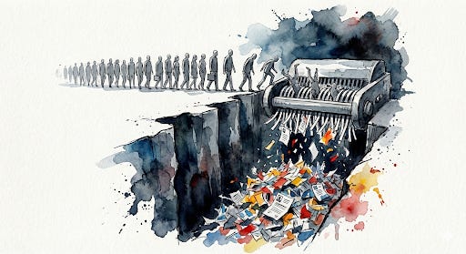 We are entering an era where the entry-level rung of the ladder is missing, and the filtering system for senior levels is broken.